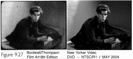 found in Bordwell and Thompson's Film Art (6th ed.) on the left, and the corresponding (underscanned) frame as captured from the New Yorker DVD on the right.